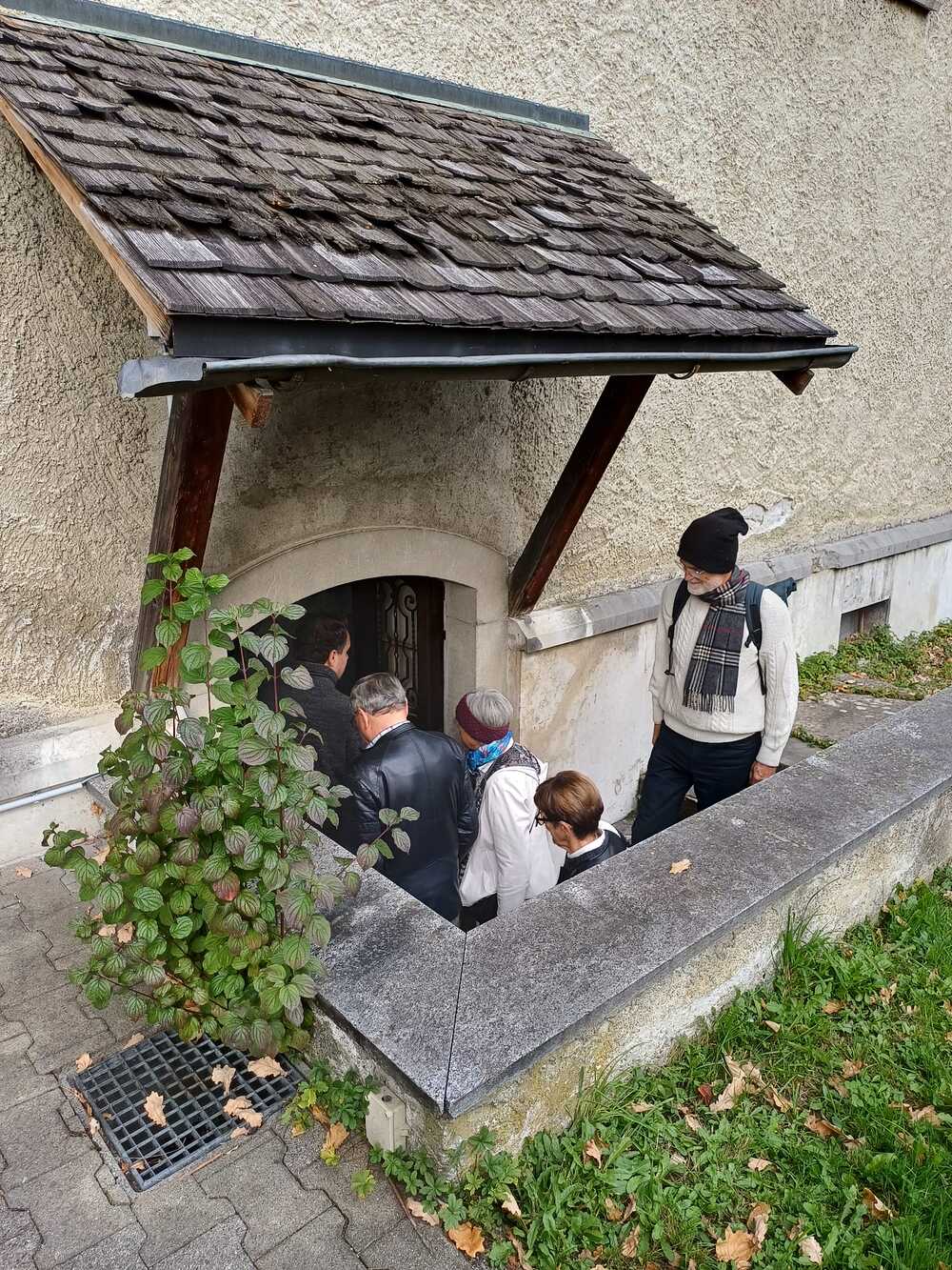 Das Ziel ist die Pfarrkirche St. Gallus in Bregenz. Bereits im Bus begaben sich die Teilnehmenden auf die historische Reise. Nach einer freundlichen Begrüßung wurden die Mitreisenden mit geschichtlichen Verbindungselementen der Pfarren Röthis und Bregenz St. Gallus sowie anderen bedeutsamen Besonderheiten auf das Ausflugsziel vorbereitet.