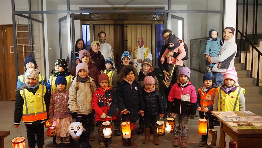 Beim diesjährigen Martinsfest am 8. November durften die Kinder mit ihren leuchtenden Laternen in die dunkle Kirche einziehen. Musikalisch begleitet von der Röthner Jungmusik feierten Vikar Willi und Gemeindeleiter Michael das Martinsfest.
